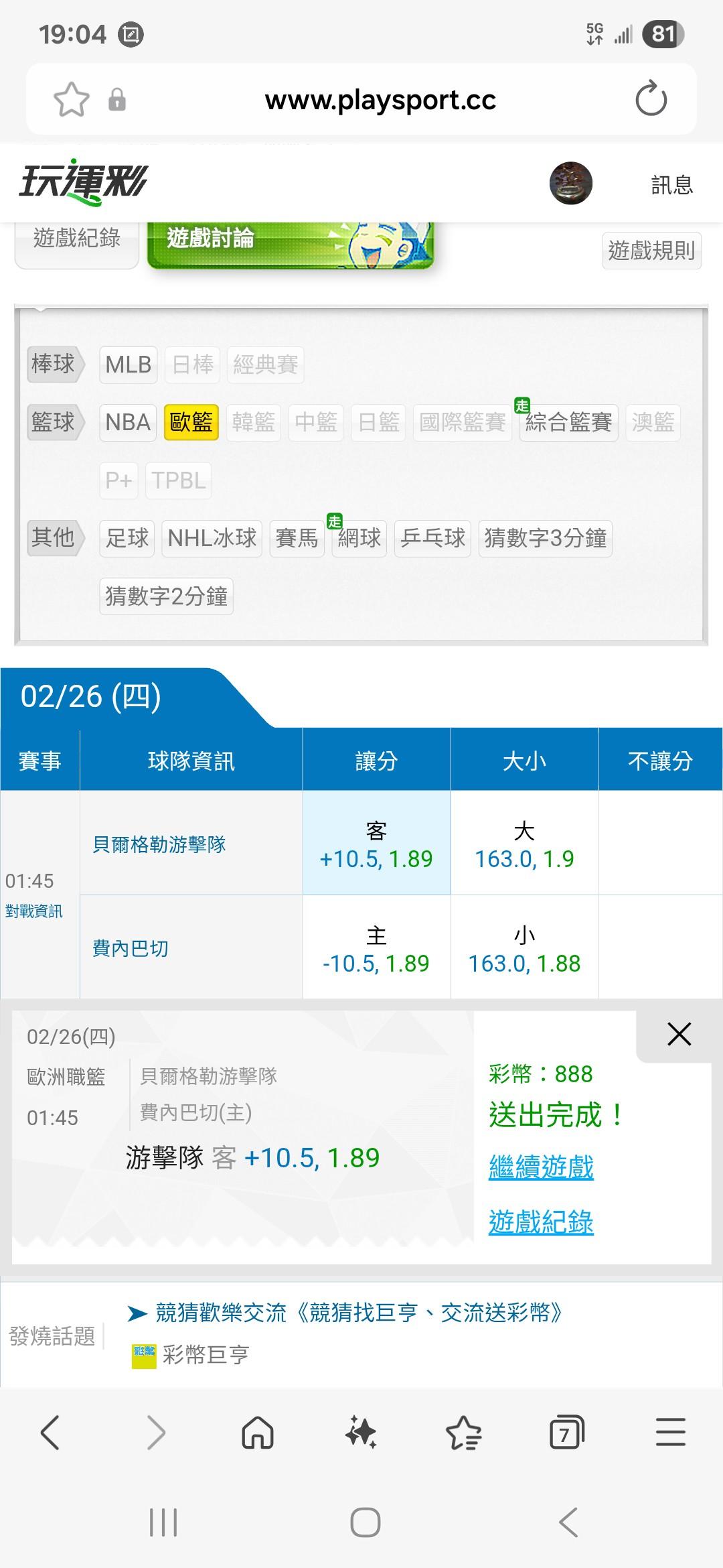 歐洲職籃 >> 推一場免費,主推若沒有過下次免費,綠綠綠
