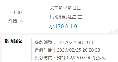 歐洲職籃 >> 2/26 歐籃推薦【運彩盤連贏5天 12過10】【免費場歡迎參考】【今日特價】