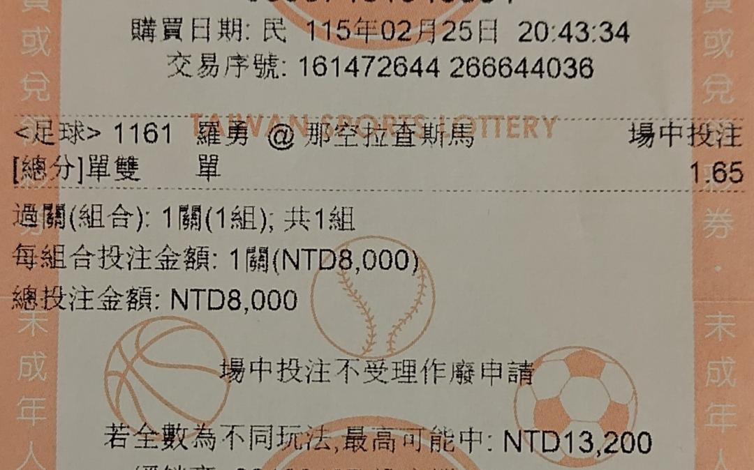 >> 2/25(泰足)場中過關