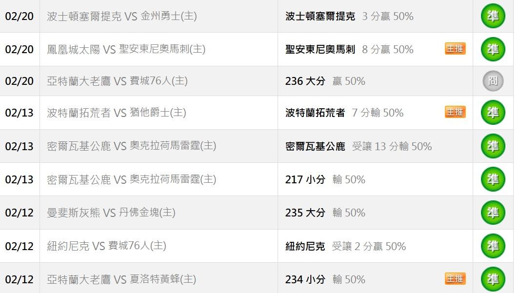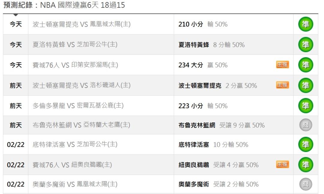 NBA >> 2/26日NBA1場參考(國際 連贏6天 18過15)