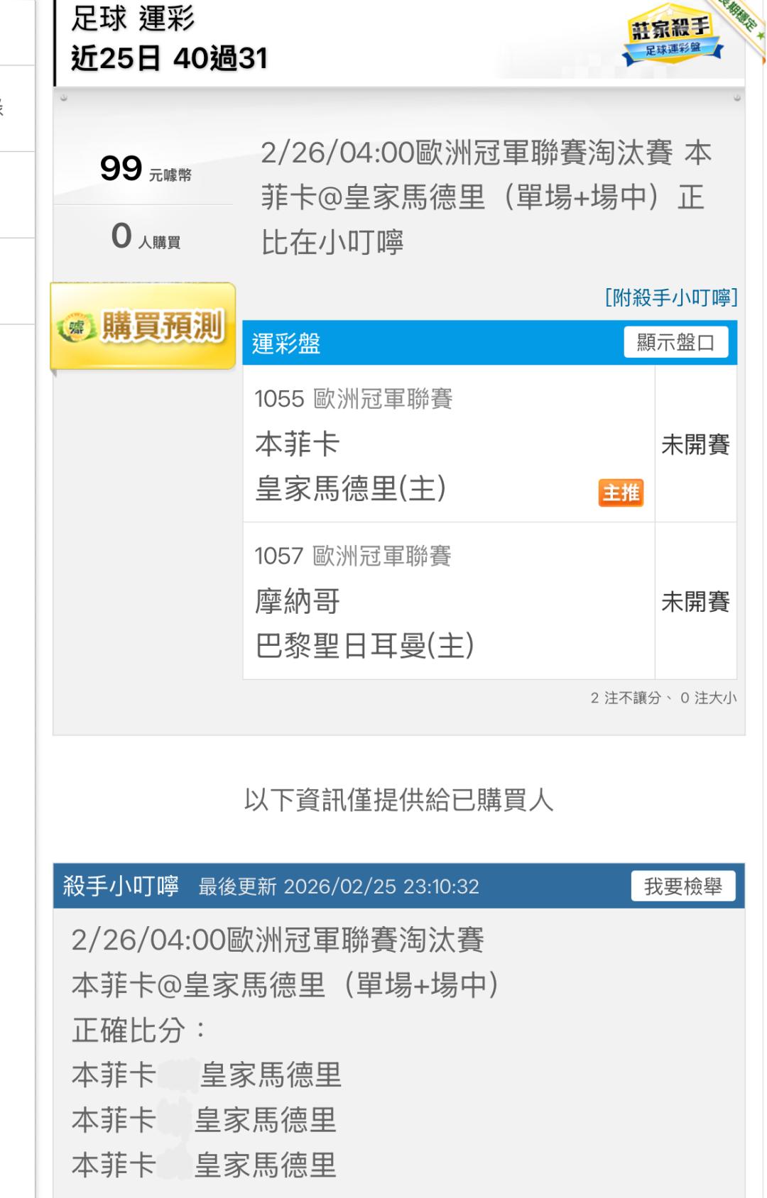 足球 >> ✅⚽️04:00歐冠淘汰賽本菲卡@皇家馬德里(單場+場中)正比在小叮嚀