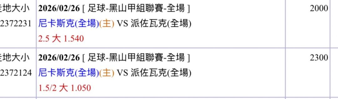 足球 >> 黑山甲 2.5 大