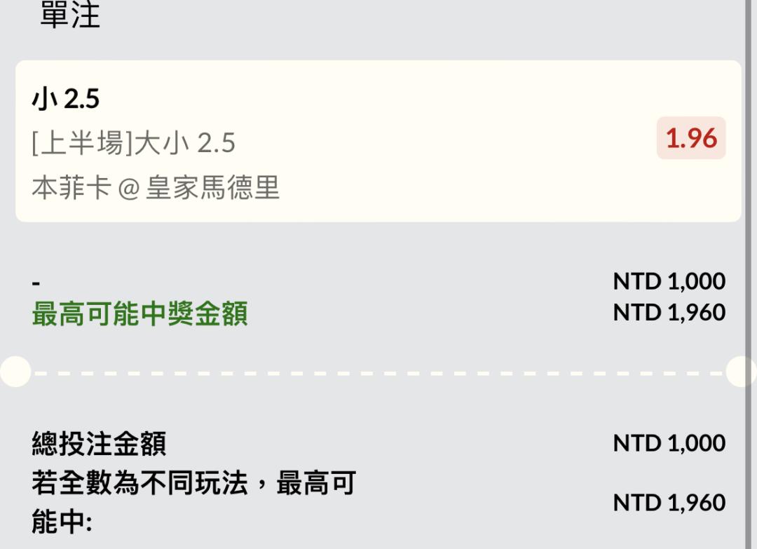 只想買一單也可以買第一球主隊試試