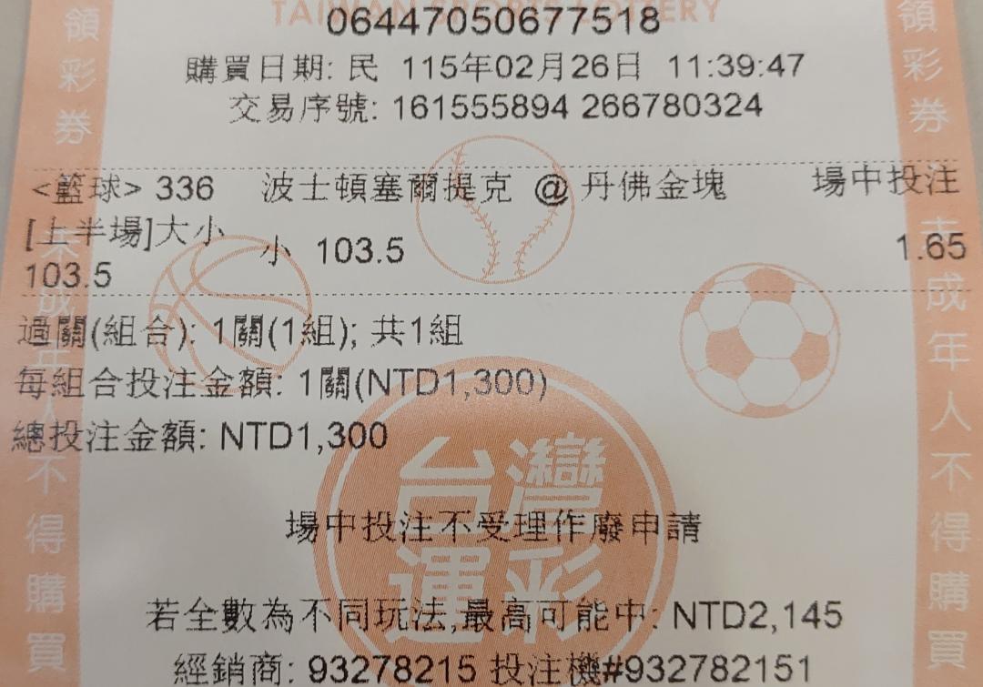 >> 2/26 場中 波士頓vs金塊 上半場 103.5小