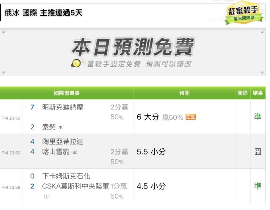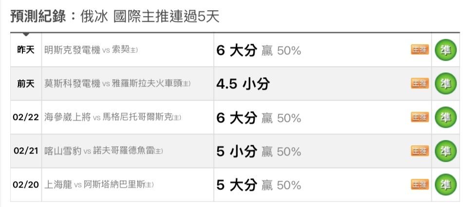 俄羅斯冰球 >> 主推五連勝🔥明日主推免費分享