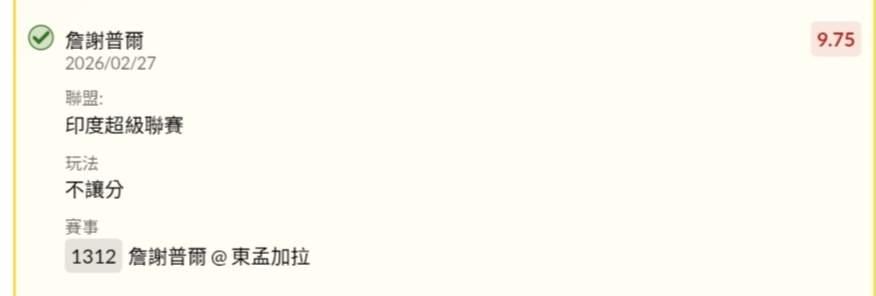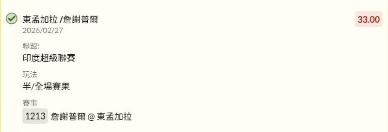 >> 2/27~🇮🇳 印度超級聯賽