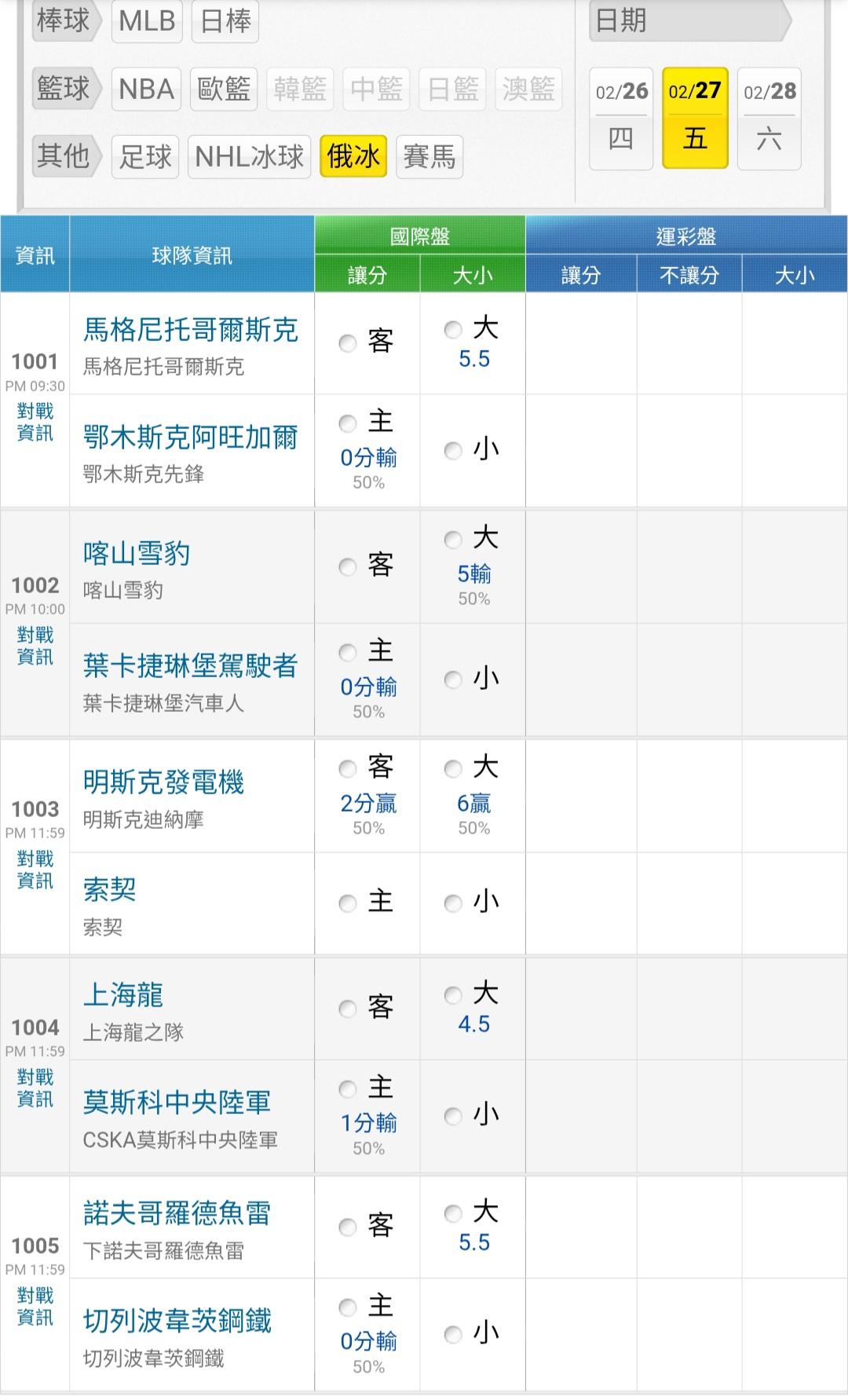 俄羅斯冰球 >> 今天俄冰盤口