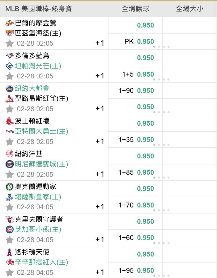 >> 2/28 美棒初盤熱身賽(預祝過盤)