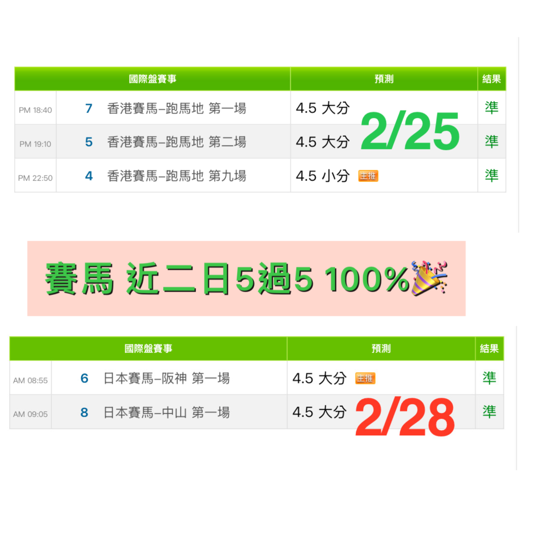 賽馬 >> 3/1🏇🌟🎯《賽馬推薦》主推連過8💰賽馬 第8周主推勝率第1名 100%🎉