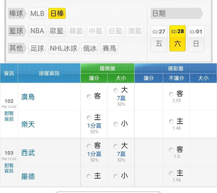 日本職棒 >> ⭐⭐2/28日本職棒盤口分享,中午12點開打⭐⭐