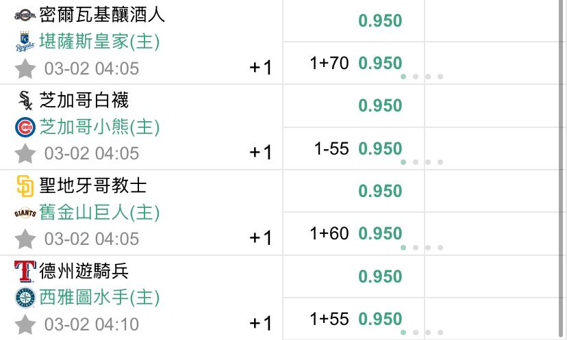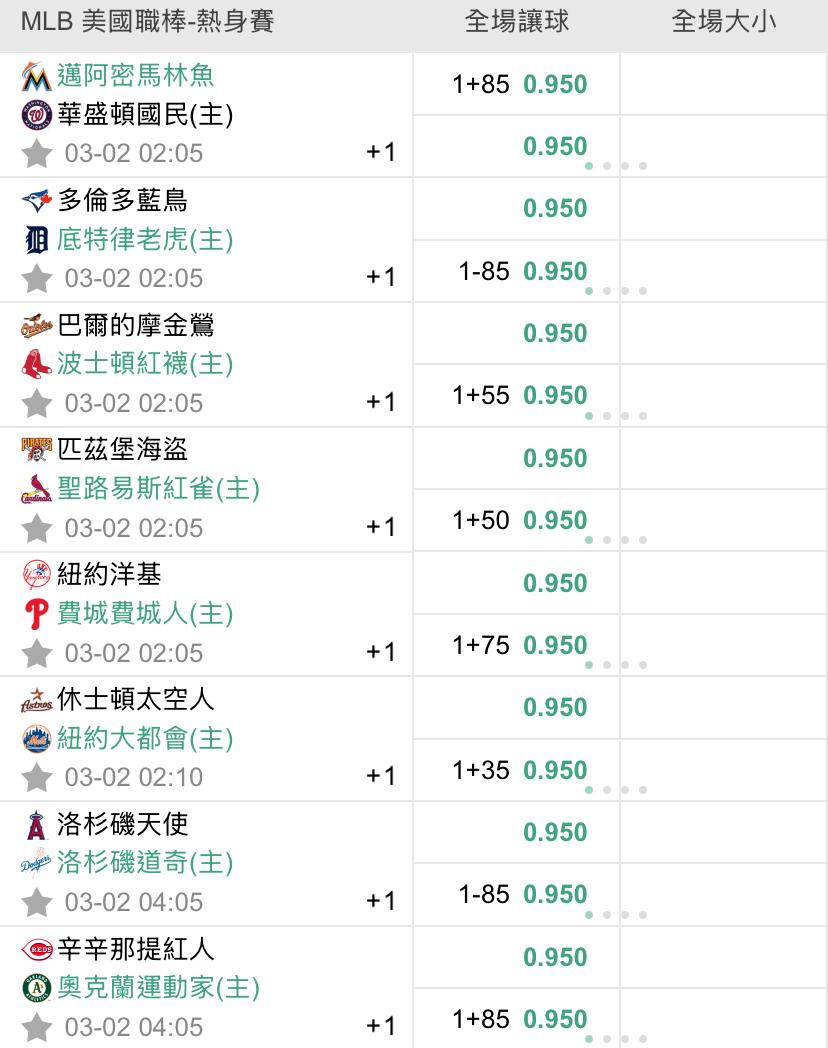 >> 3/2 美棒初盤熱身賽(預祝過盤)