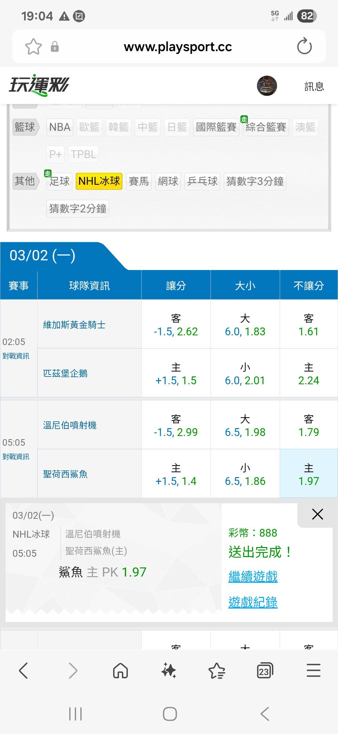NHL冰球 >> 推一場免費,主推若沒有過下次免費,綠綠綠