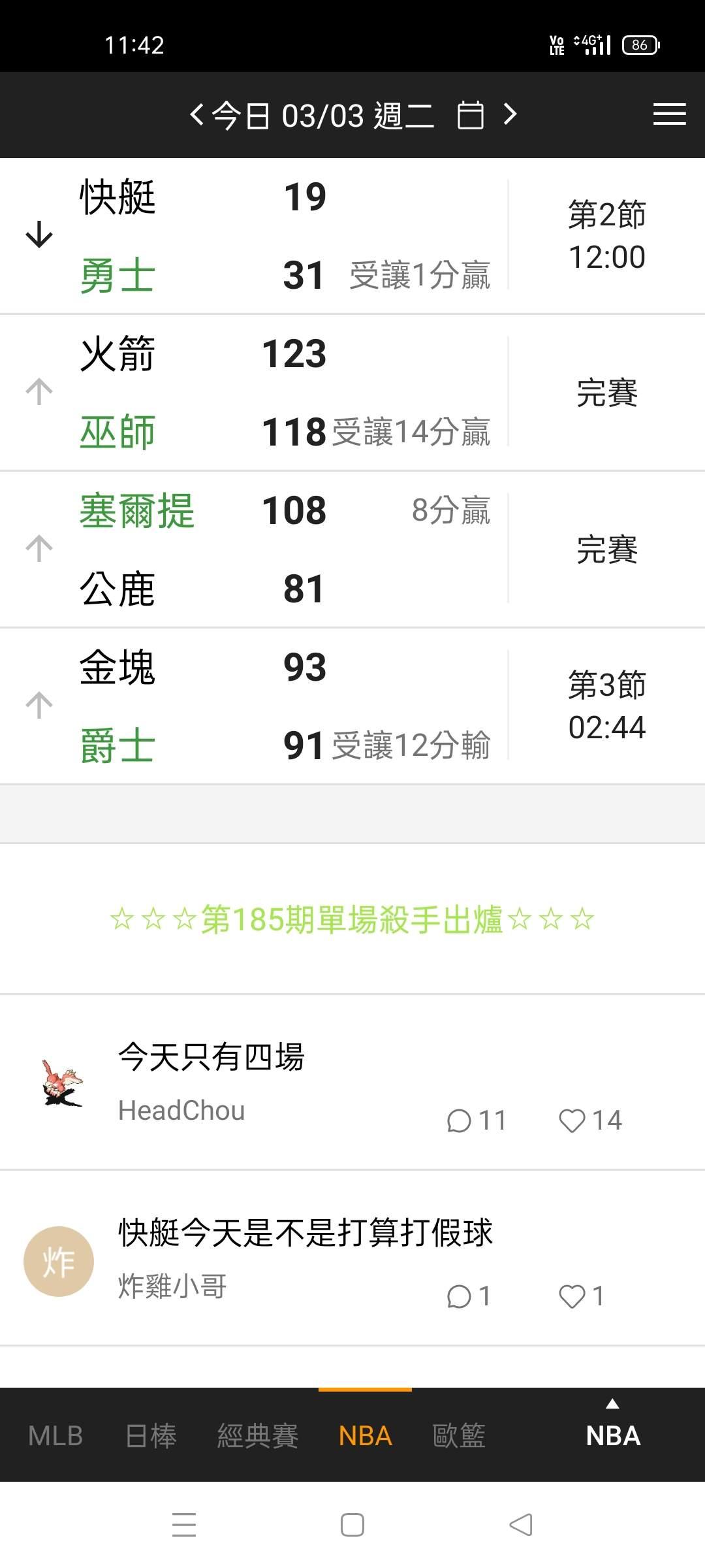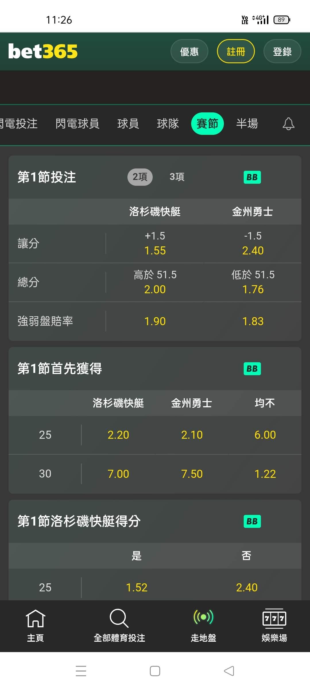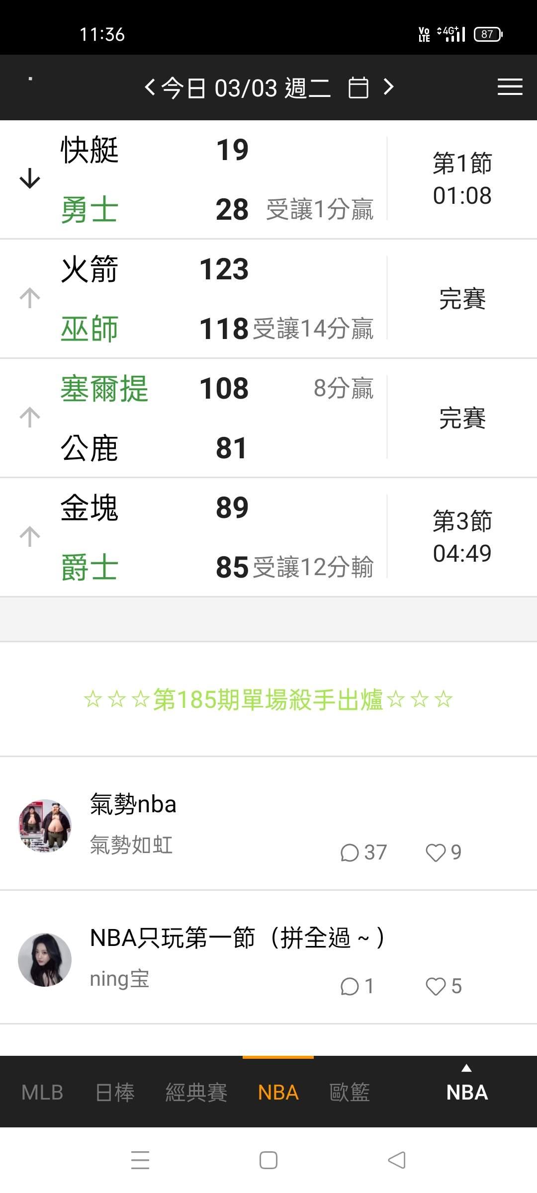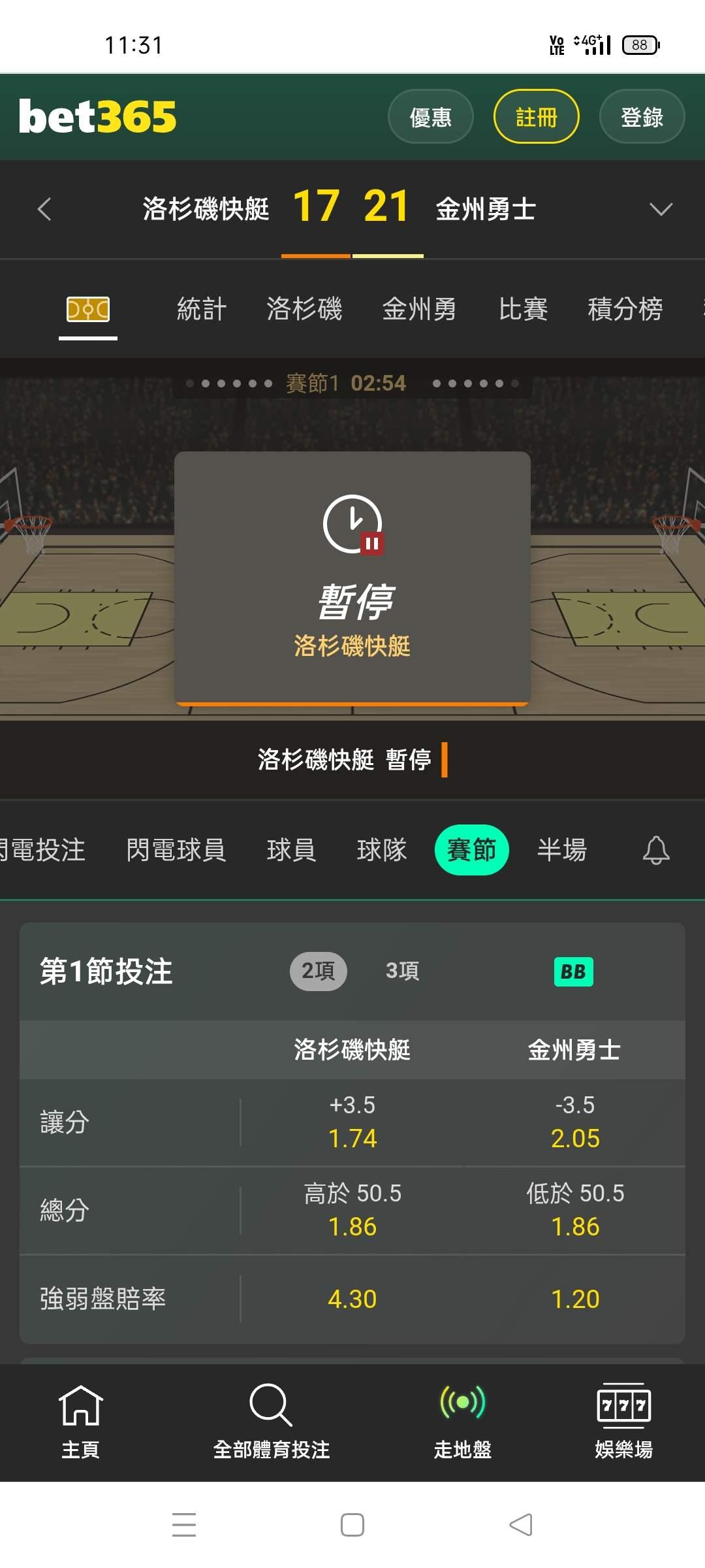 NBA >> 場中 第一節大10萬