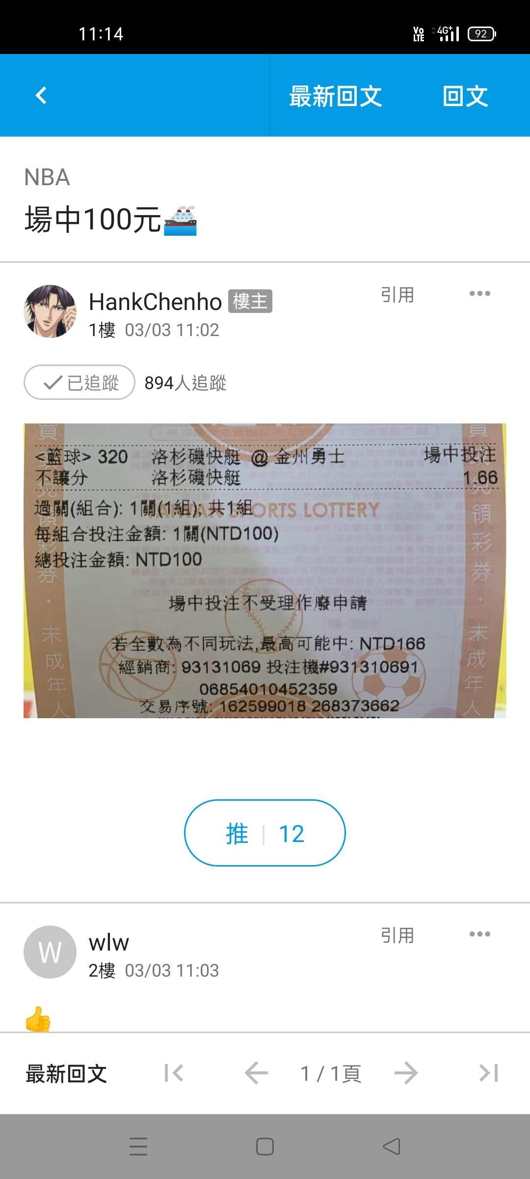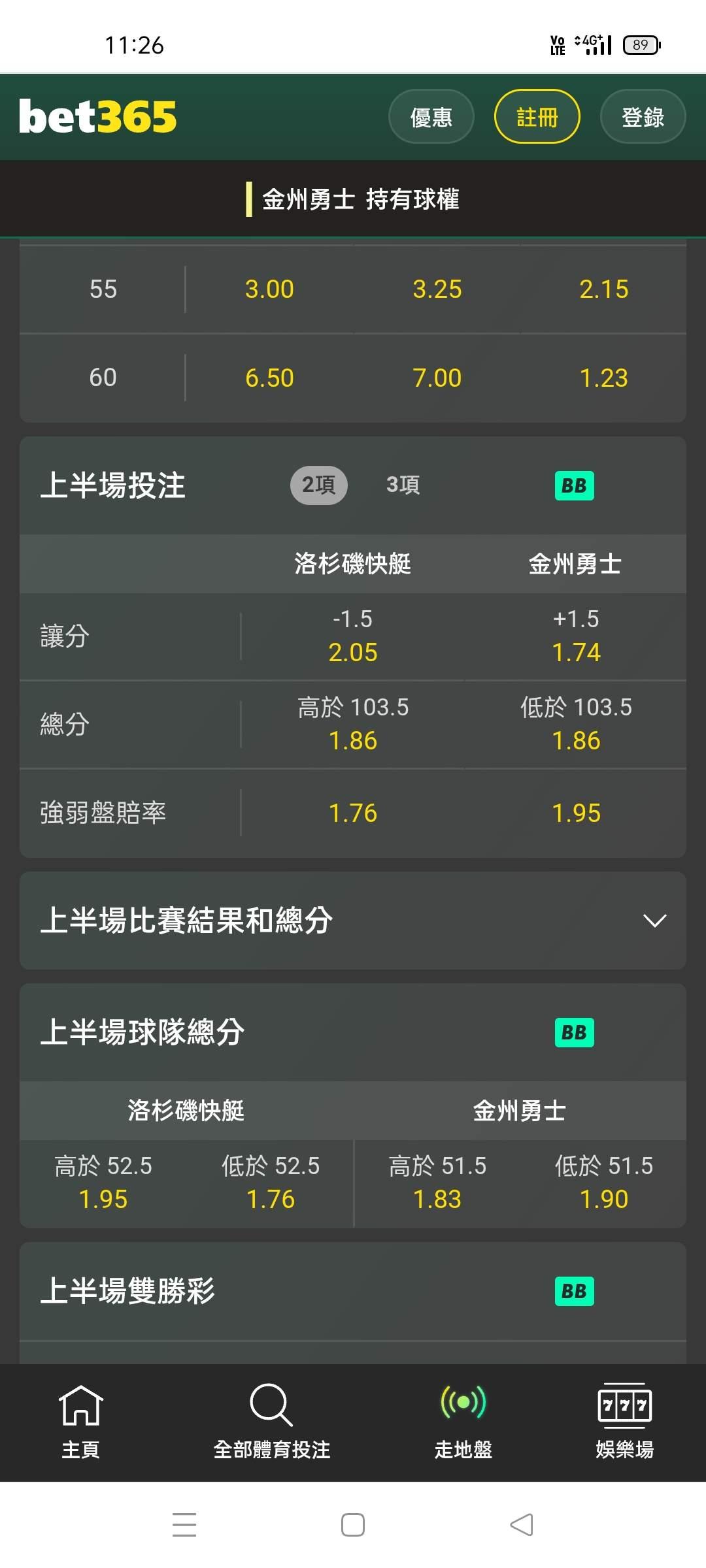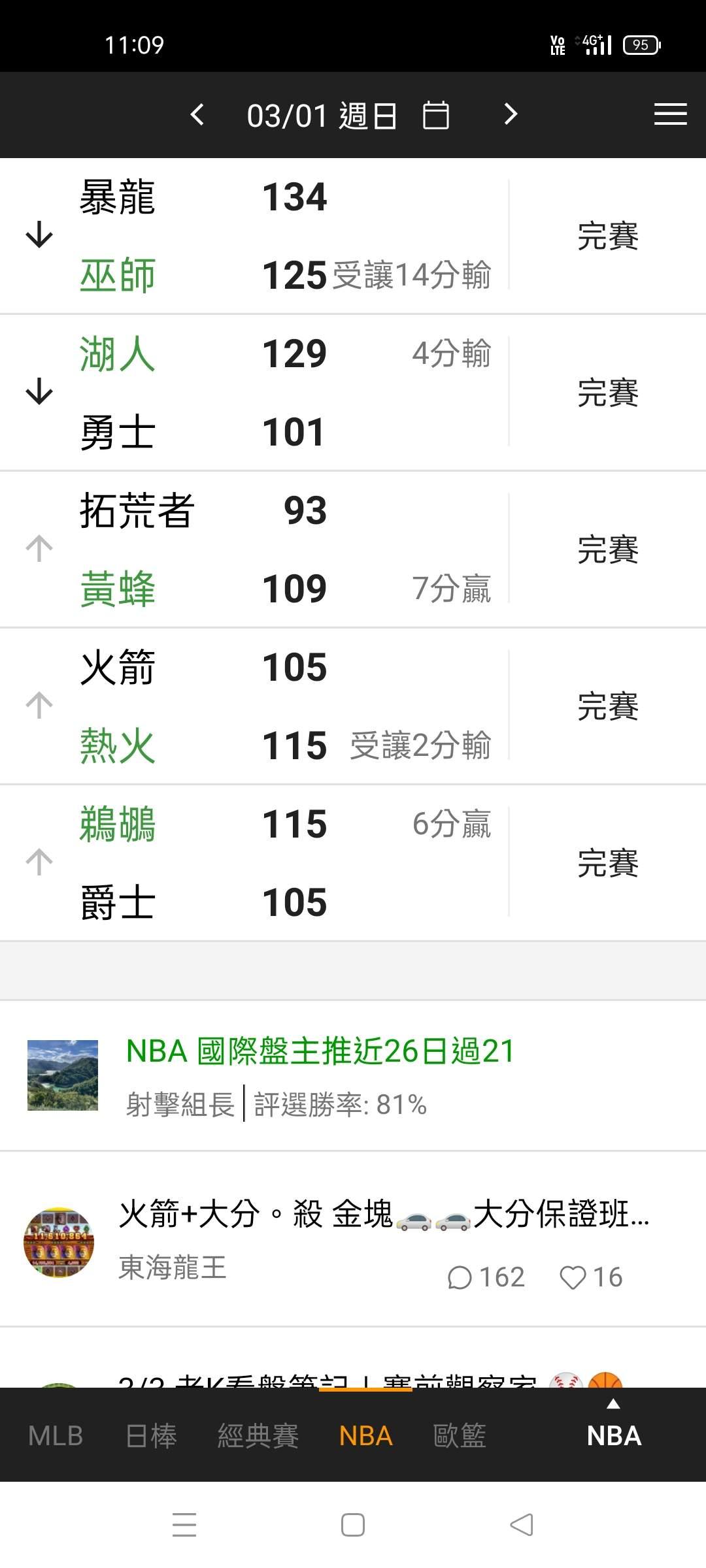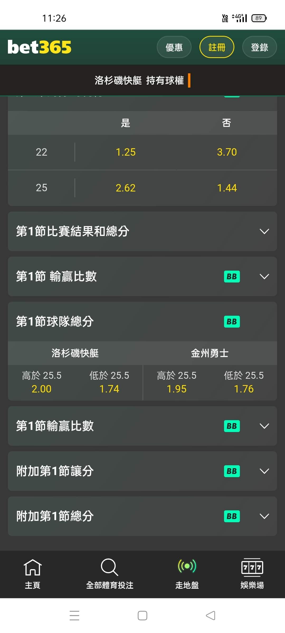 NBA >> 場中 第一節大10萬