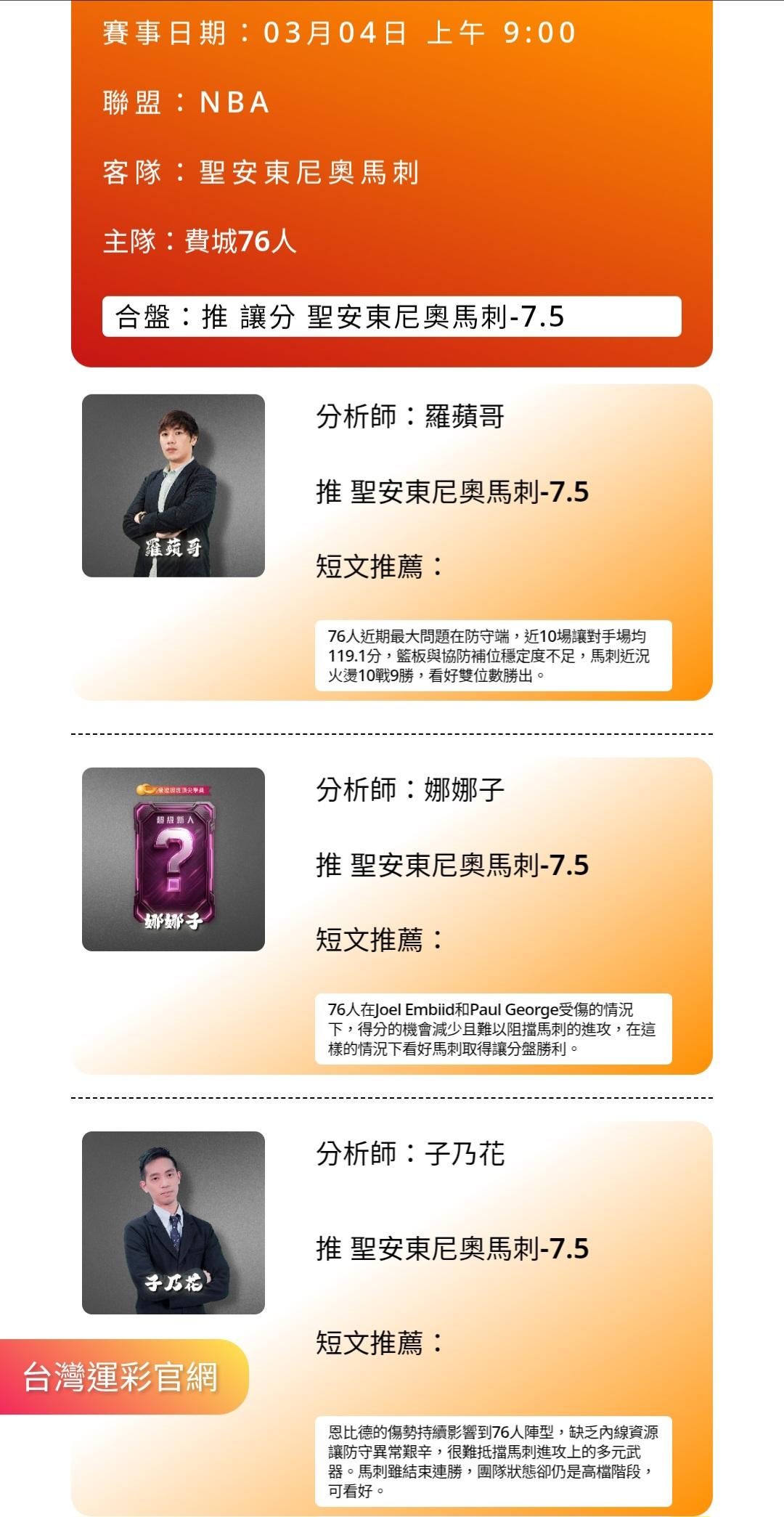 NBA >> 03/04 聖安東尼奧馬刺 V.S 費城76人