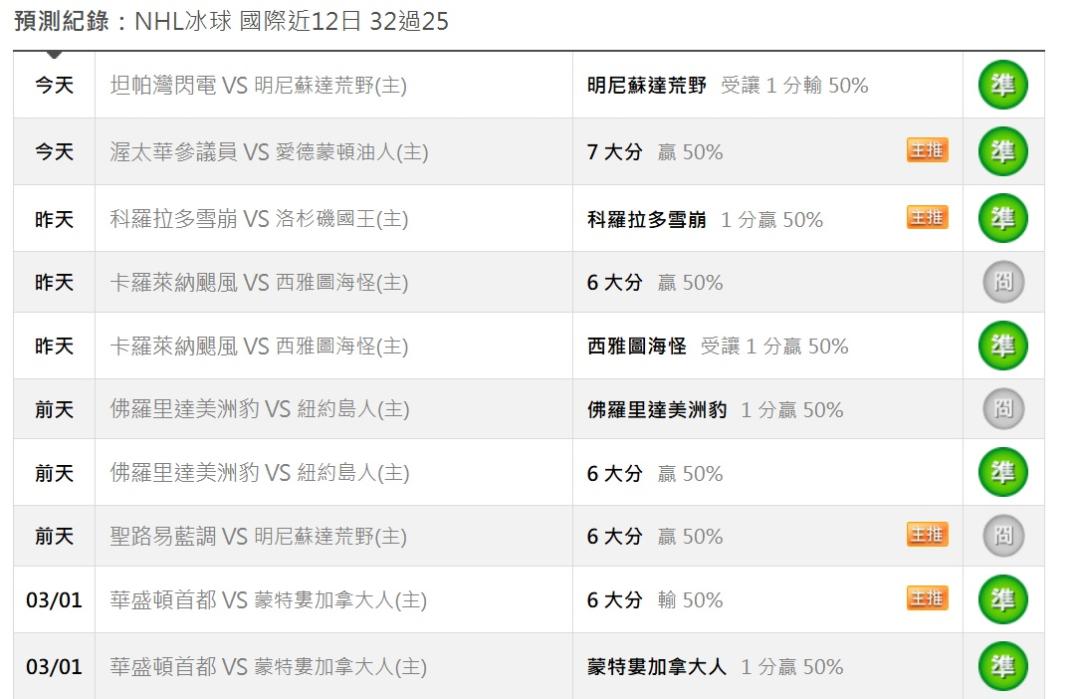 >> 冰球分享1場(國際 近12日 32過25)