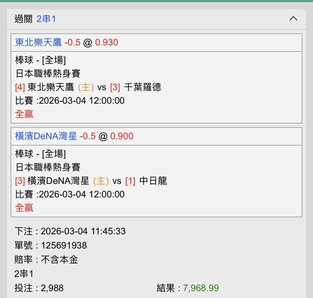 >> 3/4 日職棒⚾️🇯🇵 今天中午再收3萬