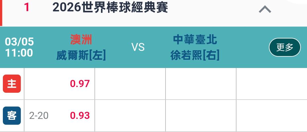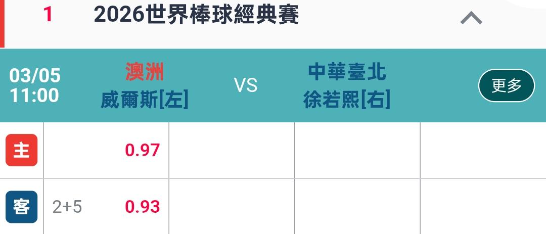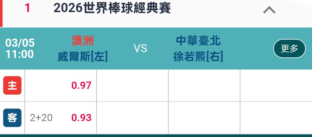 >> 中華台北2+20開盤了