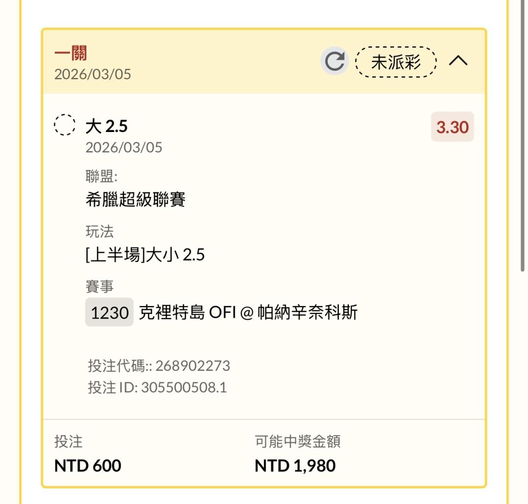 足球 >> 希臘🇬🇷40分鐘後上2.5大