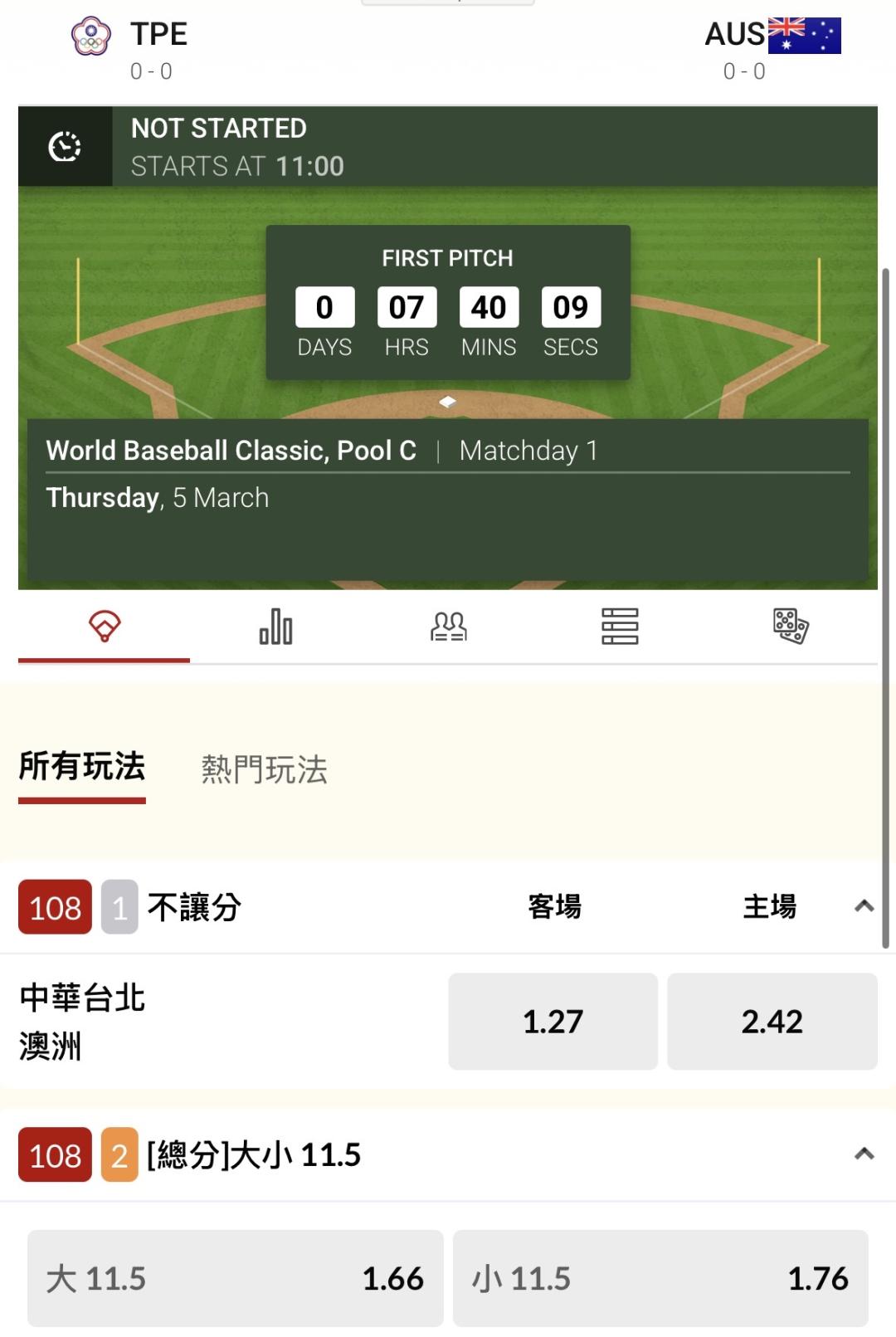 國際棒球 >> 大小分開到11?