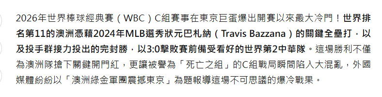 經典賽 >> 報牌,中華隊爆冷輸澳洲,今日下午比賽,韓國贏捷克越多分,對自己的晉級越有利。