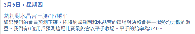 足球 >> (03/06) 運彩:英超★不讓分單場★(參考方向、賽事無絕對)
