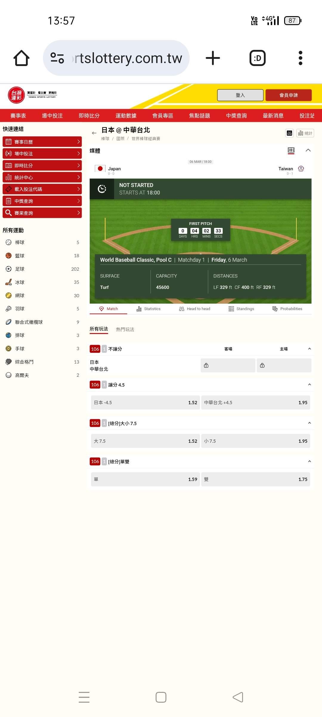 拼了啦中華隊單大 莊家看不起中華 單大開1.5 認為中華隊繼續掛蛋?還是只能勉強在日本手上拿到1分😑 我們中華今晚硬起來啦 炸個2分給日本見識見識