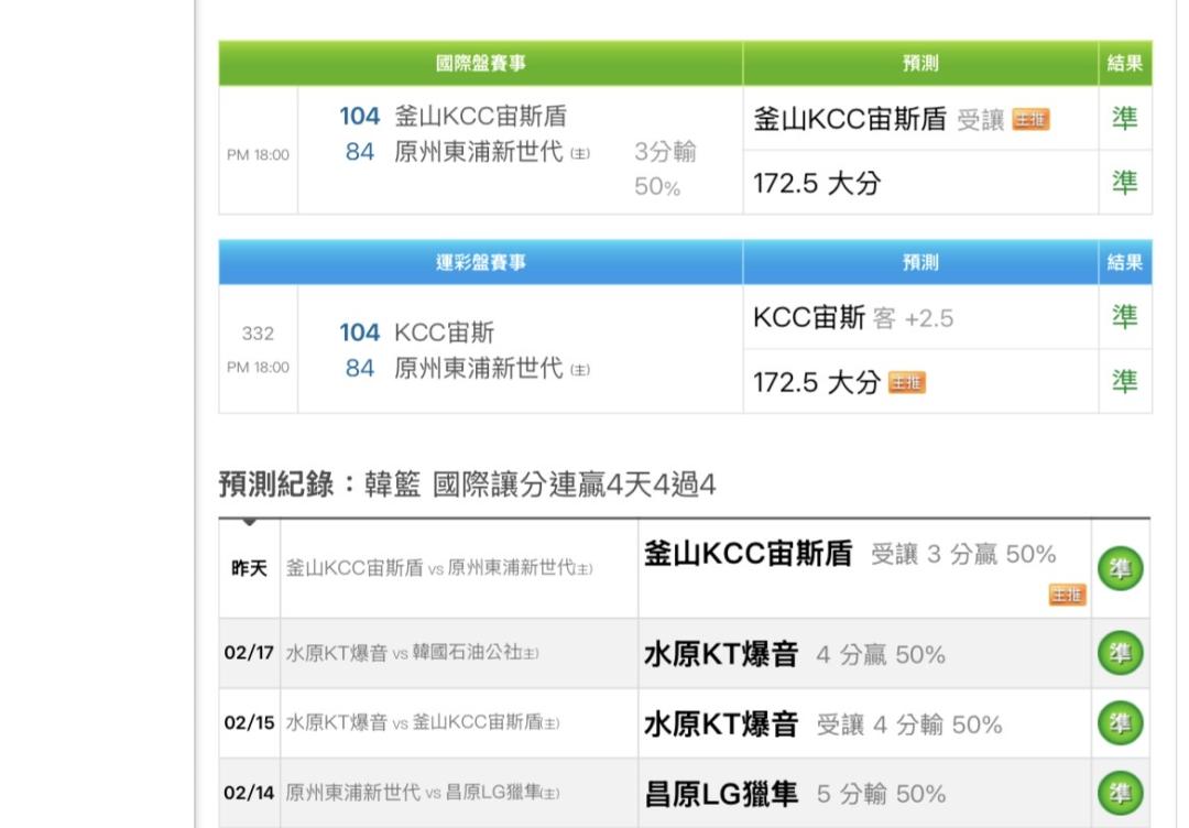 >> 昨天雙主推過關,晚上免費推薦一場韓籃~