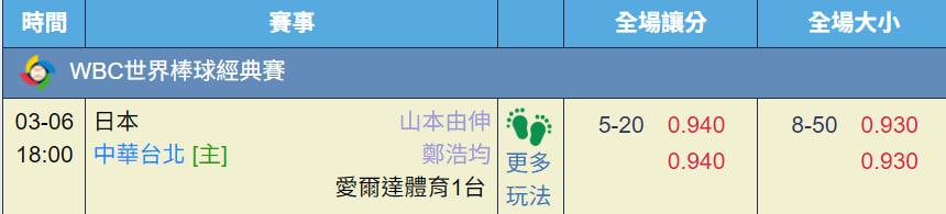 經典賽 >> WBC日本vs台灣3月6日