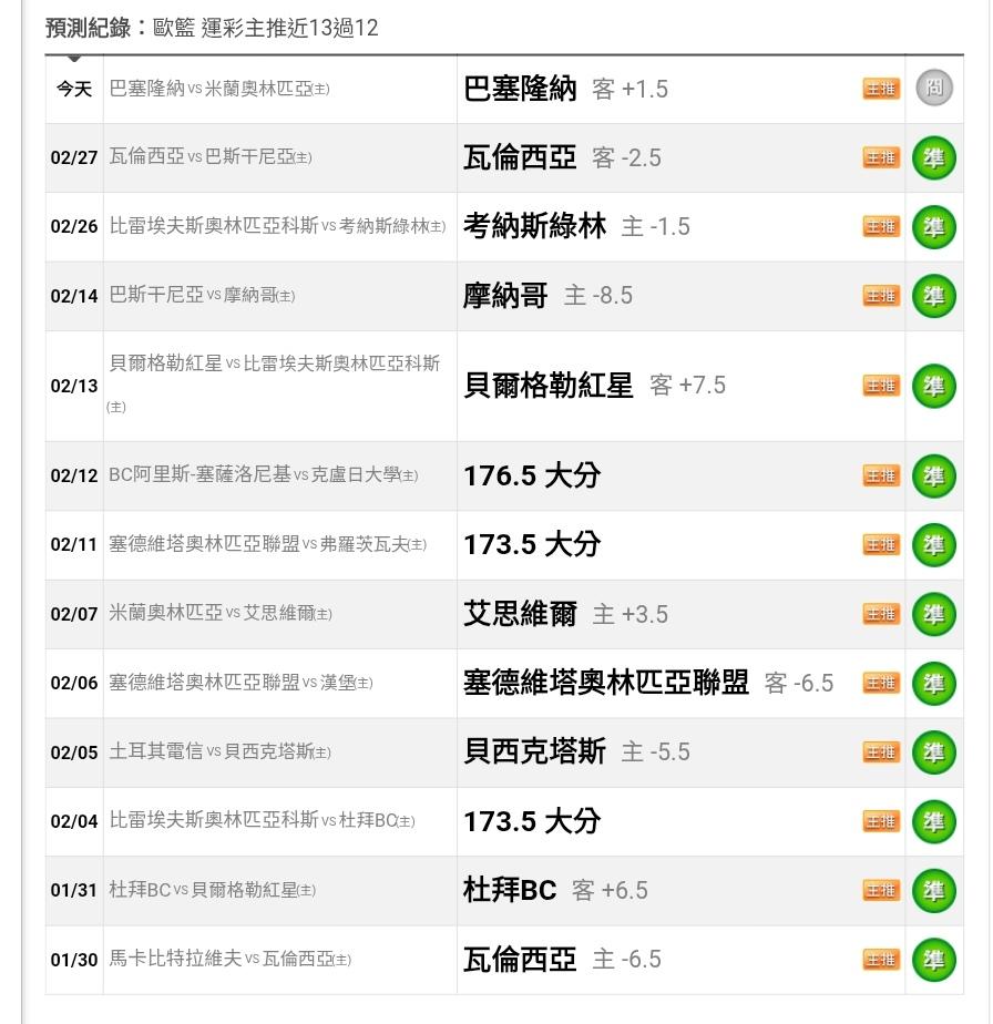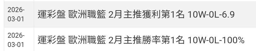 >> 運彩主推2月沒輸過啦(近13天過12)~單殺評選第一名
