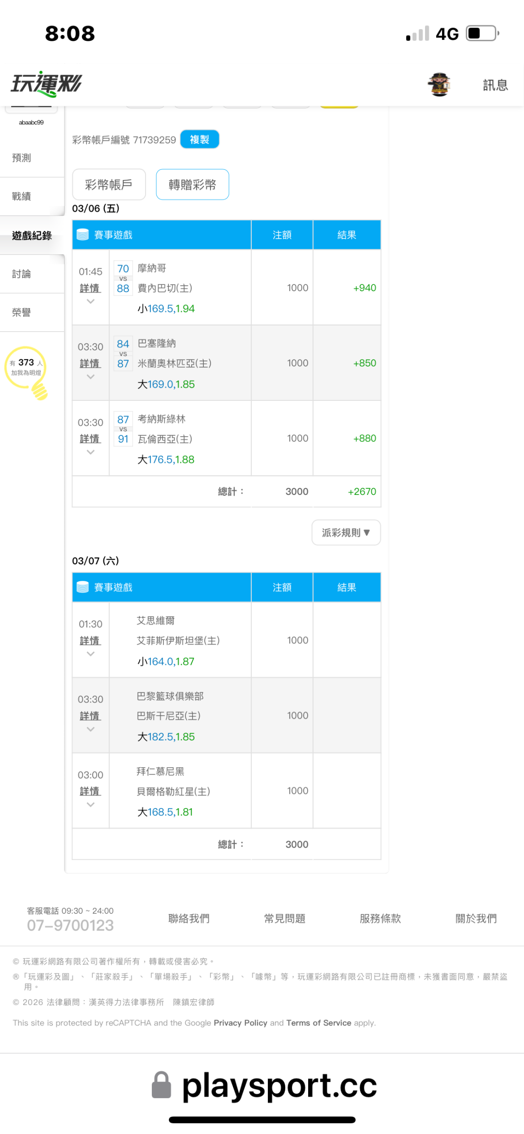 >> 慶祝(歐籃)即將3連霸(3注輸贏)