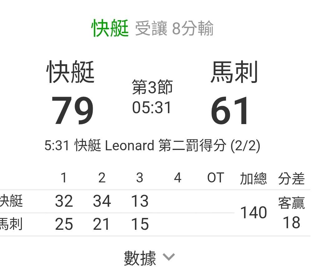 快艇領先18分了 妥了 我先自行宣布快艇+7.5過盤了 雷納德狂進球阿