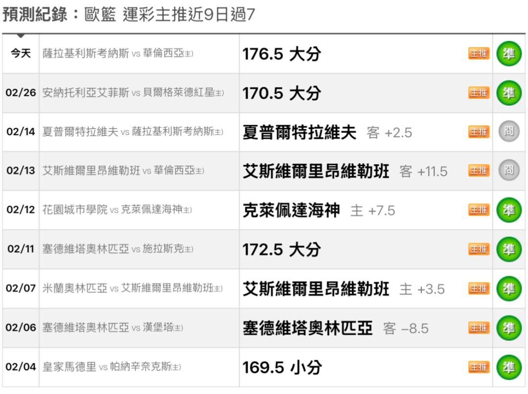 歐洲職籃 >> ✅🏀運彩主推近9過7氣勢正旺01:30信心主推一場輸贏