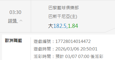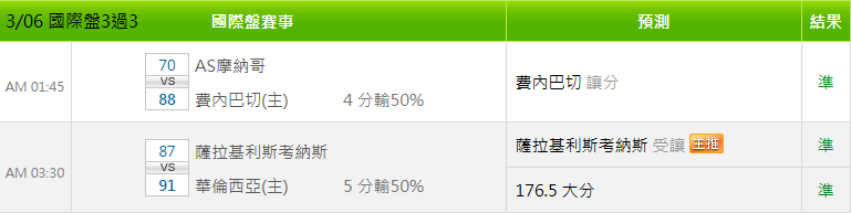 歐洲職籃 >> 3/07 歐籃推薦【國際盤連贏2天 5過5】【國際主推信心度高】【免費場歡迎參考】【今日特價】