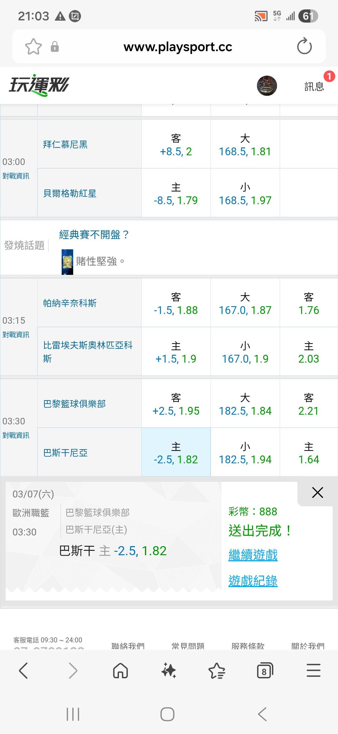 歐洲職籃 >> 推一場免費,主推若沒有過下次免費,綠綠綠發發發旺旺旺