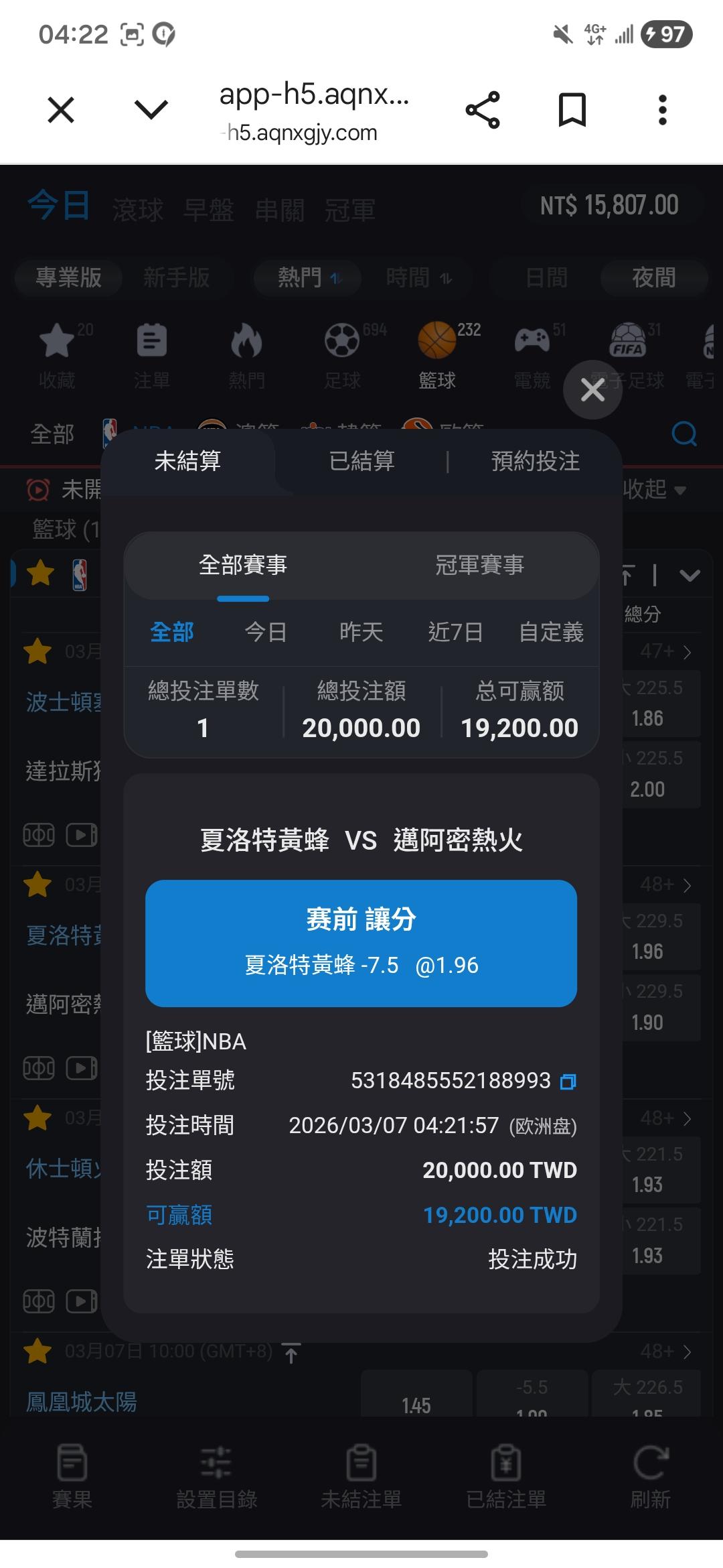 >> 3/7 黃蜂-7.5將繼續強勢過盤!單場20000元