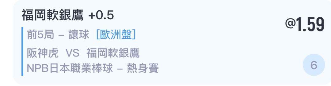 免費分享 軟銀 阪神上半場 軟銀受讓0.5