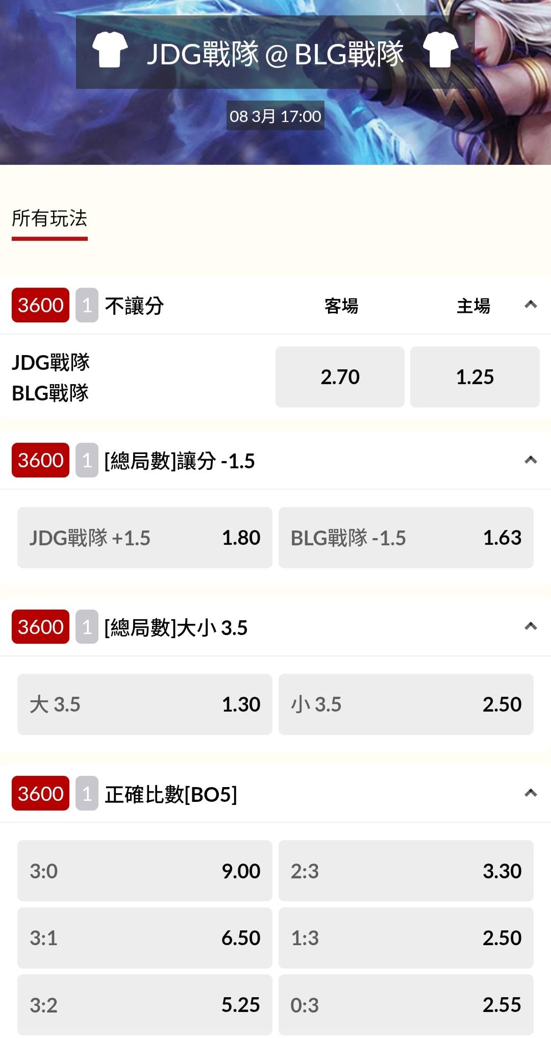 電競 >> 03/08 JDG戰隊 V.S BLG戰隊 LPL至尊冠軍戰