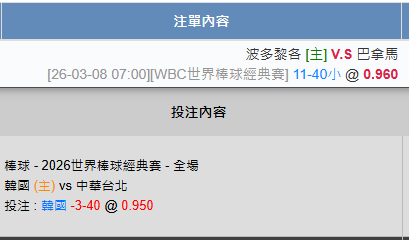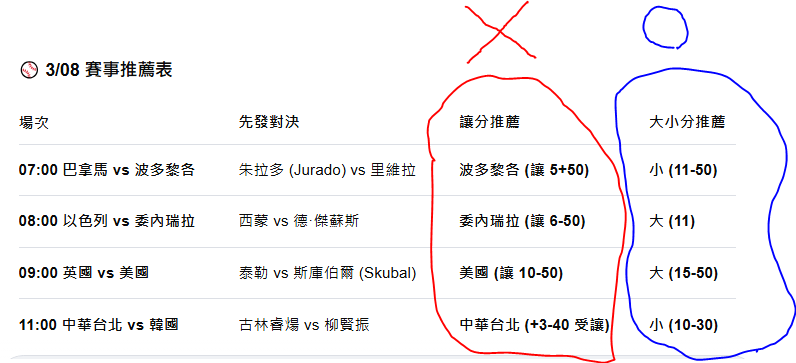 >> 3/8 WBC 早4場AI推薦 歡迎反壓