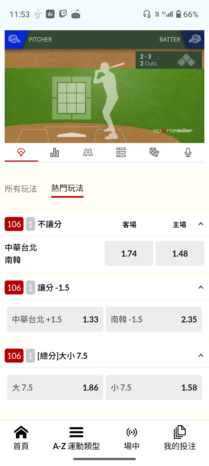 我是知道他們最低的時候平均賠率還有個1.66 但是你看這個不讓分賠率 平均賠率剩下1.61左右 我現在很少買久久看一次因為賠率爛的離譜 |