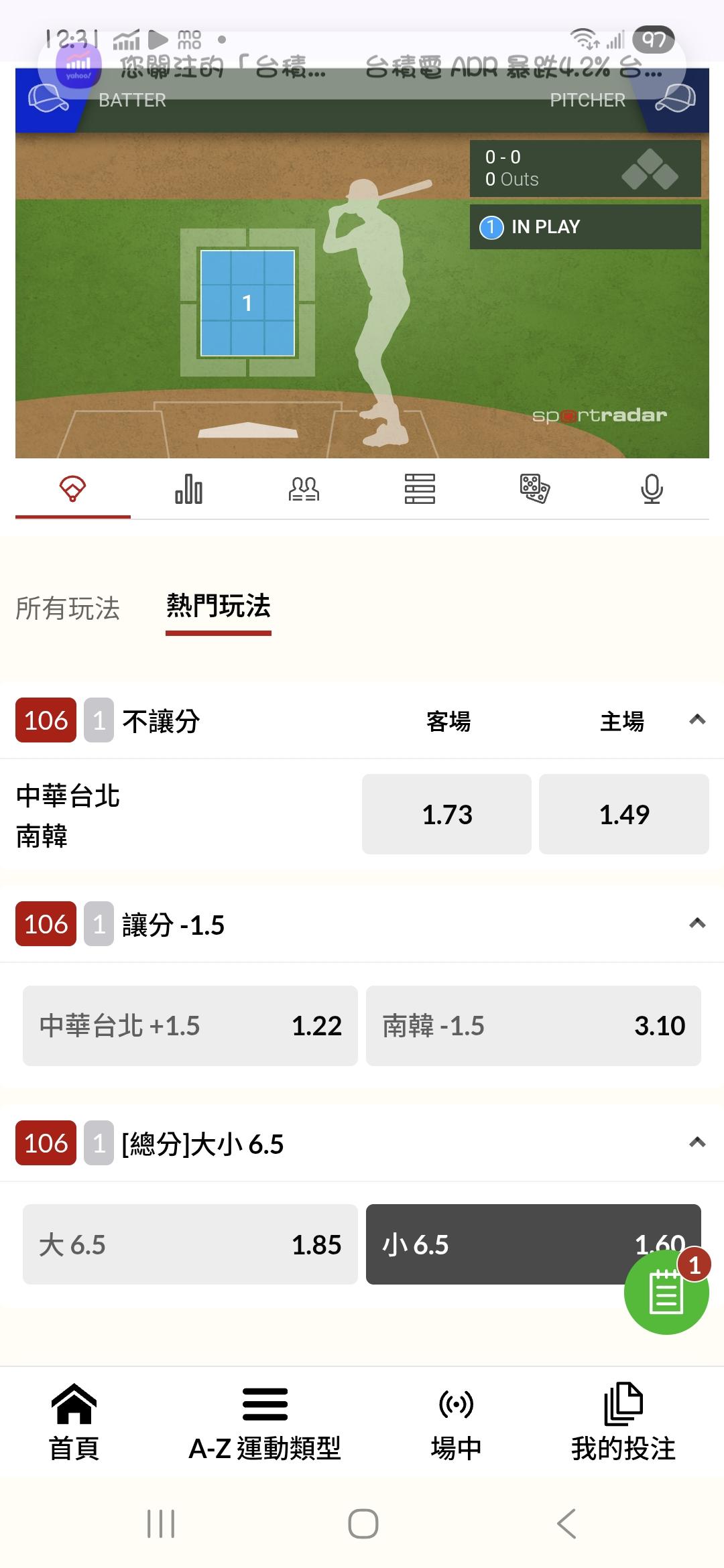 第一次看到比數領先的賠率居然比落後的還要高