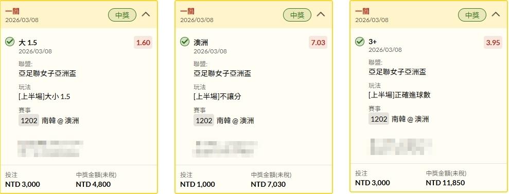 足球 >> 17:00南韓 澳洲女足 2.5小分全場!參考~