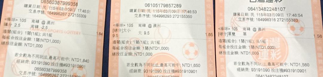 韓國11.10.8.7機會高.澳洲1.2.3機輝高