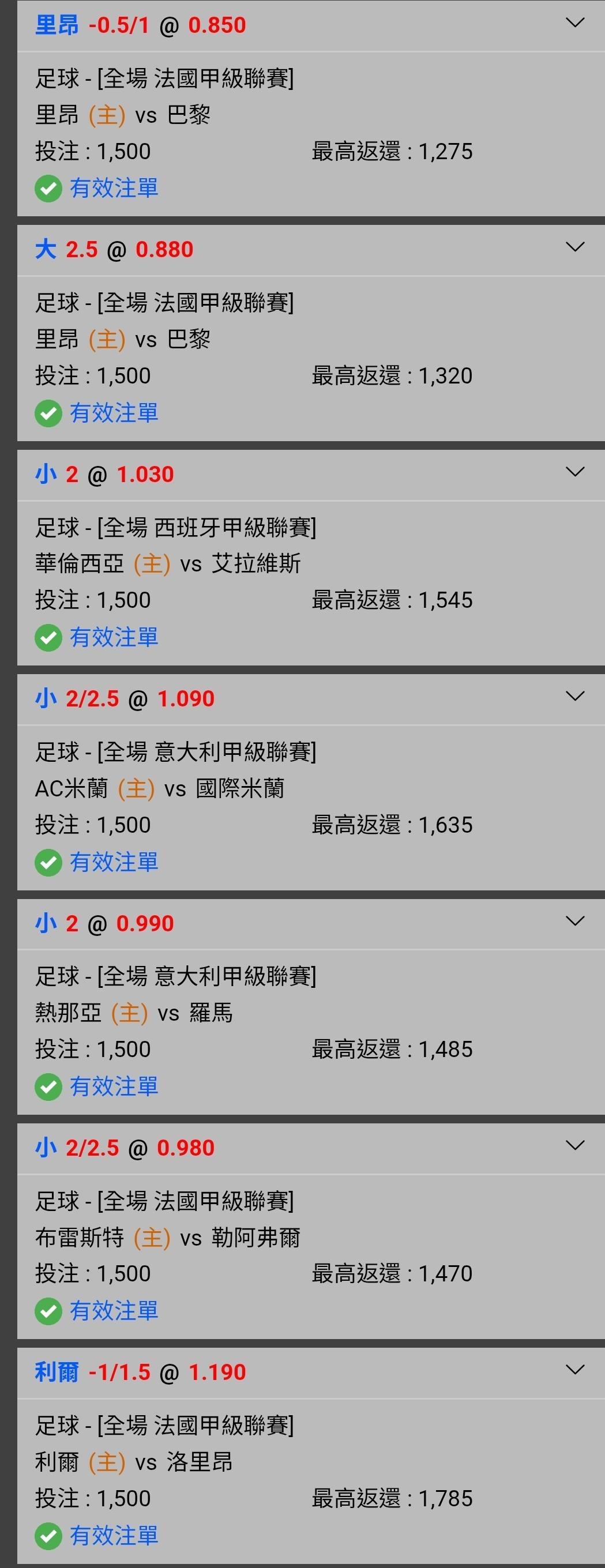 | 運彩盤賽事 |