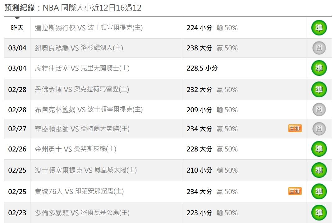 >> 3/9日NBA1場參考(國際主推連過2天,國際大小 近12日16過12)