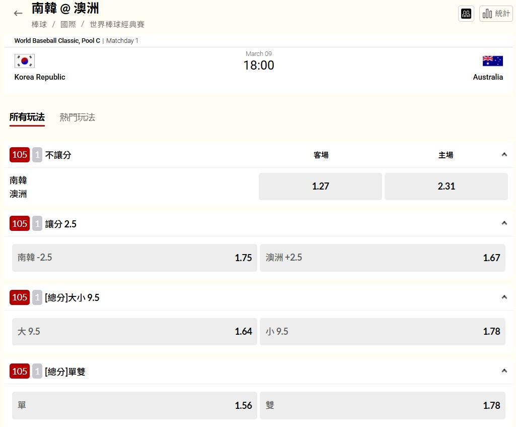 經典賽 >> 03/09 南韓 V.S 澳洲 聽天由命