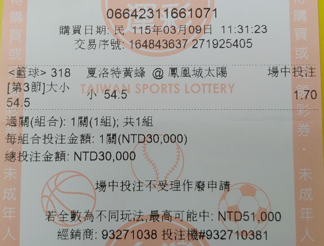 >> 3/9 場中 黃蜂vs太陽 第三節54.5小
