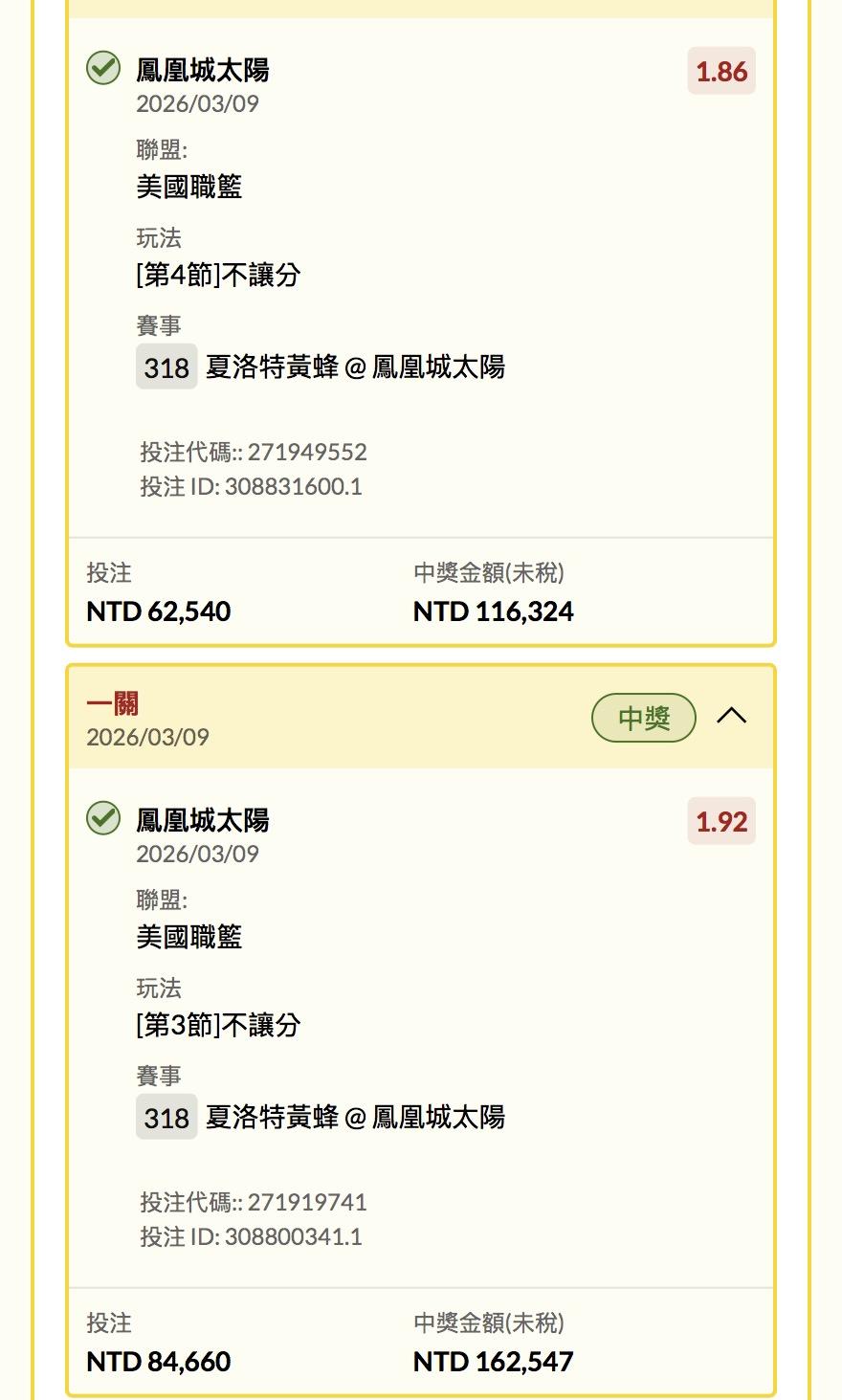 好猛…每單都大注 重點都收 恭喜🎉