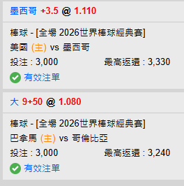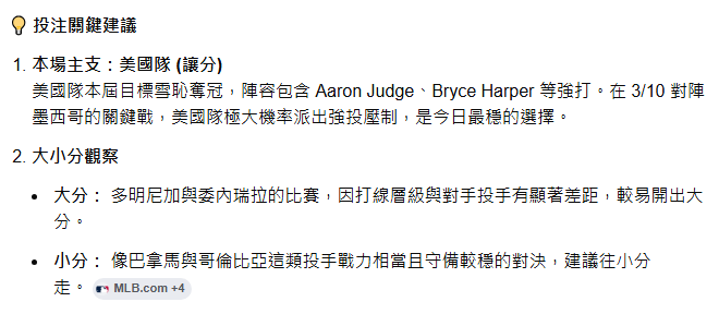 >> 3/10 經典賽 6場AI推薦 + 2場反壓注單