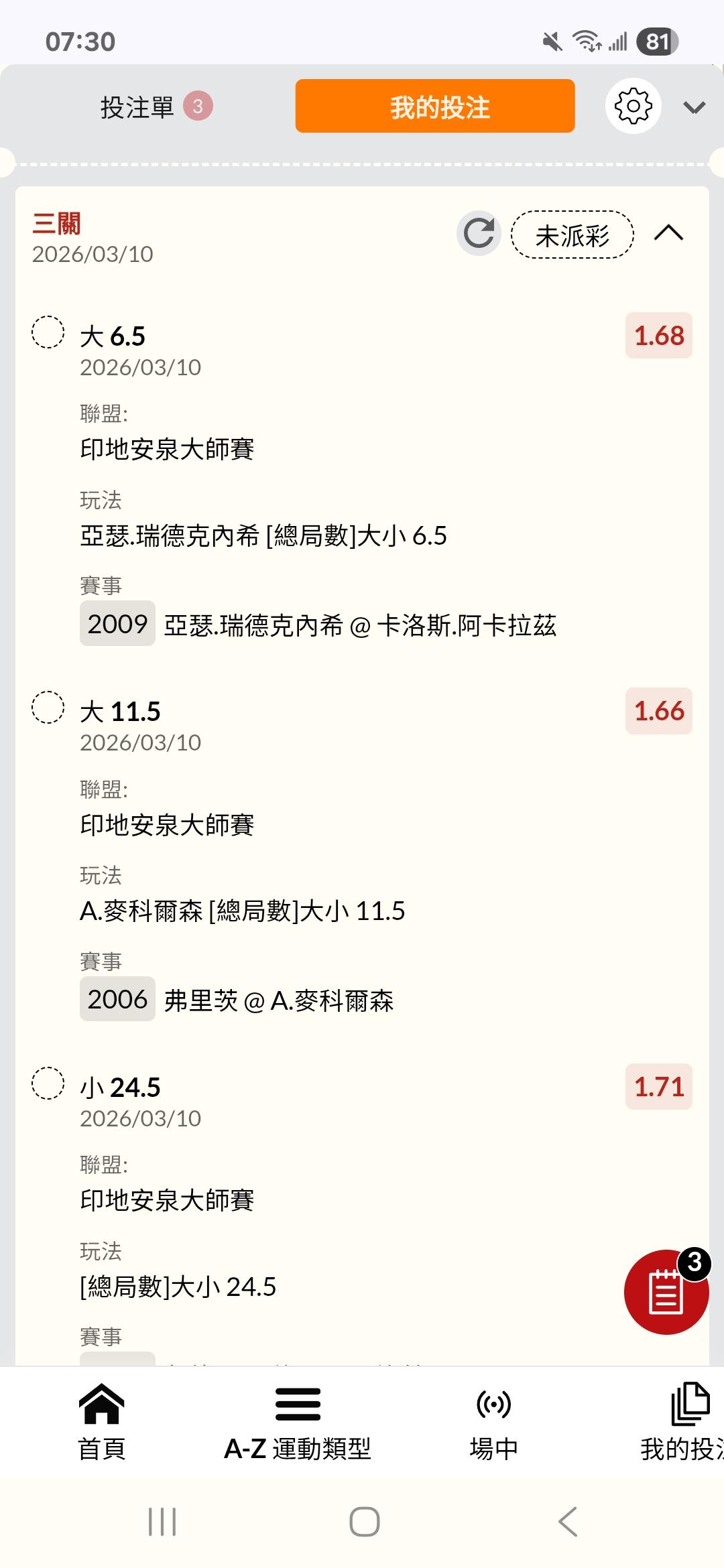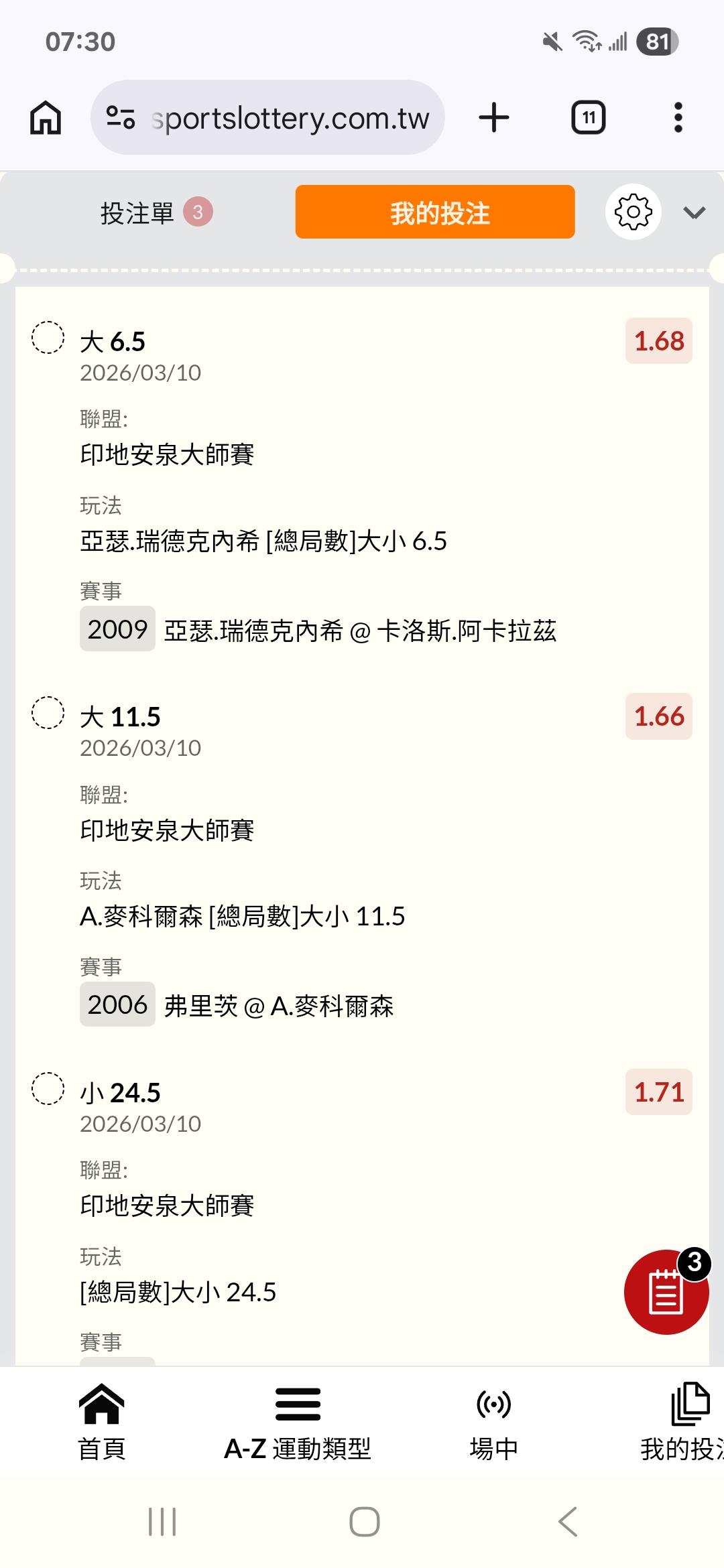 網球 >> 3/10 WTA、ATP 網球公開賽